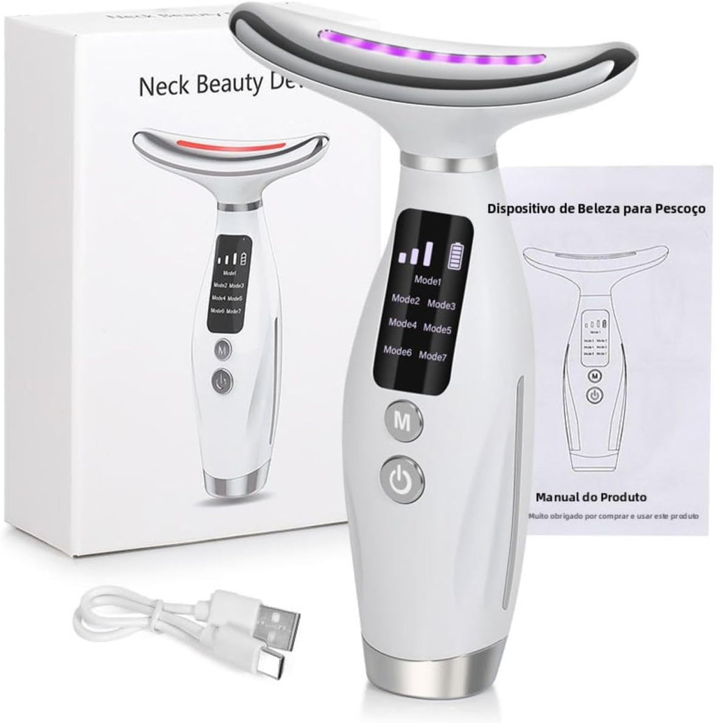 - 1x Massageador Rejuvenescedor com LED para Rosto e Pescoço - GlowRenew